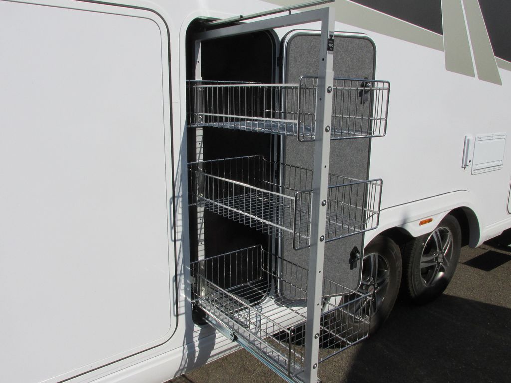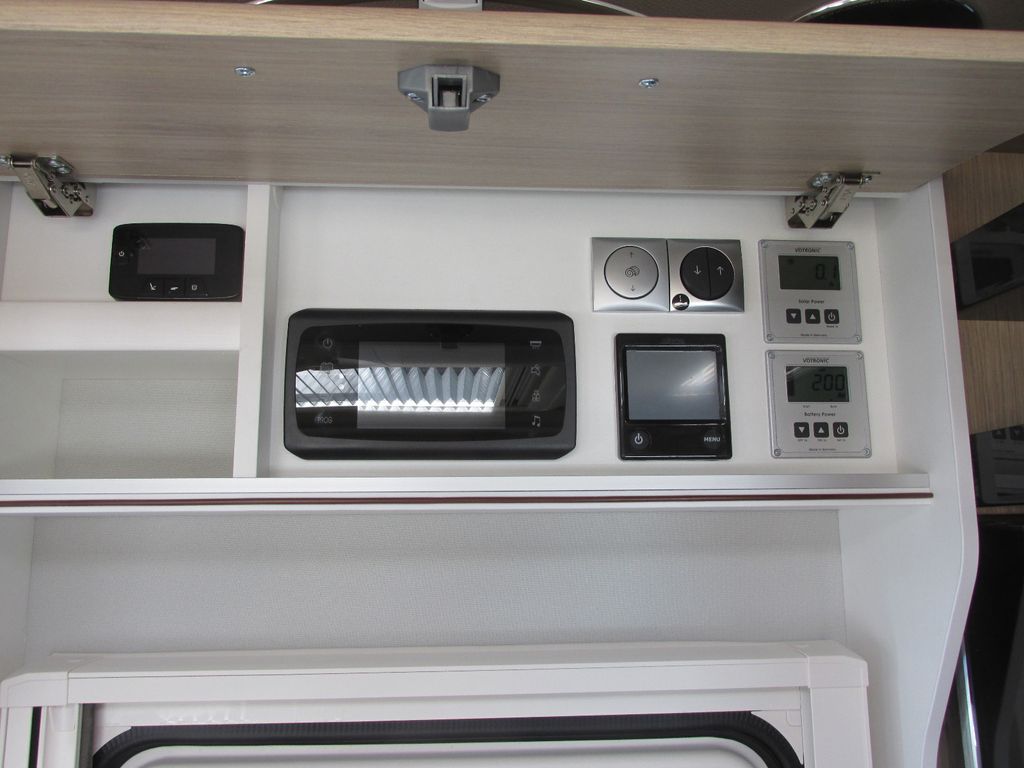 Luxury Ausstattung Int. Serie bestehend aus elektrischem Verdunklungsplissee anstelle manuellem Verdunklungsplissee, zweiter Gelbatterie 80 Ah inkl. Zusatzladegerät 22 Ah, zus. Steckdosen in hinterer Heckgarage auf Beifahrerseite 1x 12 V und 1x 230 V, ALDE Compact 3030 HE Warmwasserheizung (anstelle Truma-Heizung)