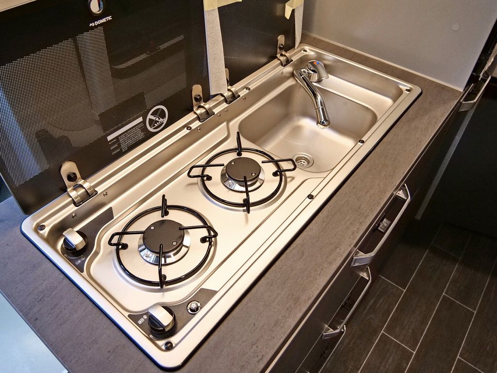 Function-Paket (Tisch ausdrehbar, klappbare Kleiderstange in Nasszelle an Dach und 2 Kleiderhaken, Küchenarbeitsplatte mit abklappbarer Verlängerung und 2 Taschenhalter)