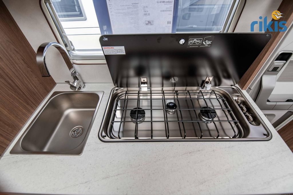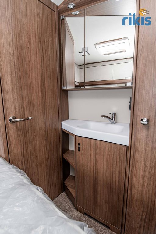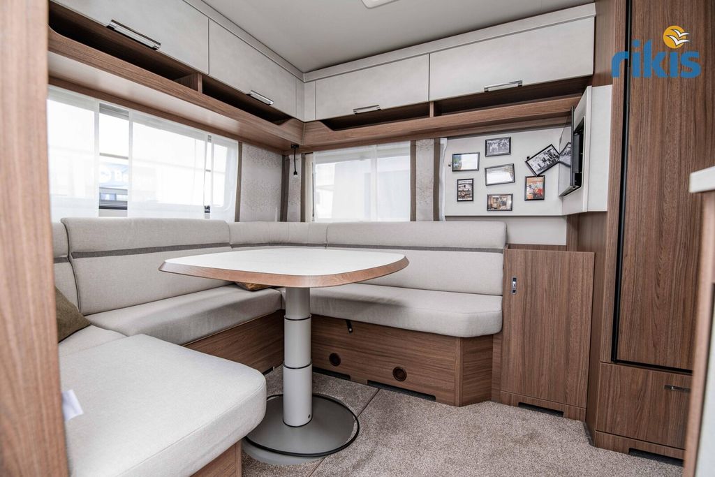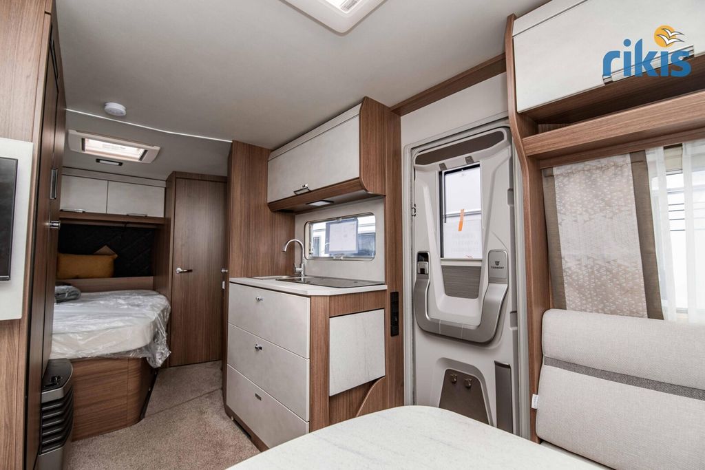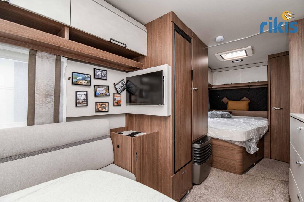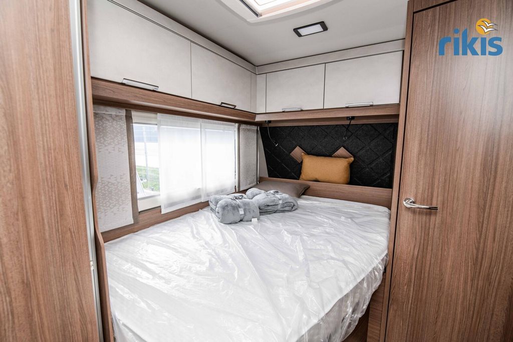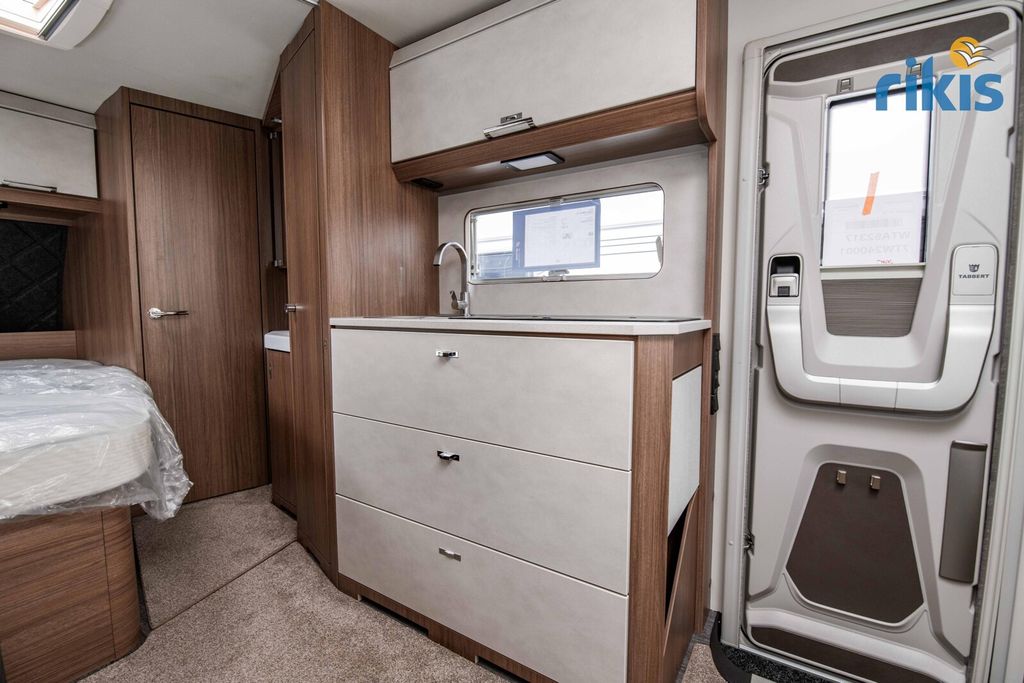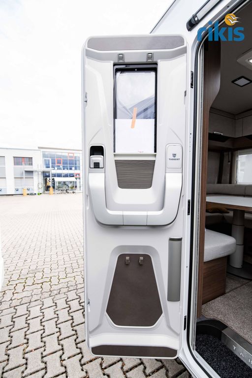 Premium Interieur-Paket I (Deko-Paket Schlafen "CAZADORA" 4 Kissen und 2 Decken im Schlafbereich, TABBERT Komfort Schlafsystem mit flexiblem Tellerrost und WaterGEL-Matratze, Insektenschutztür, Füllstandsanzeige für Frischwassertank)
