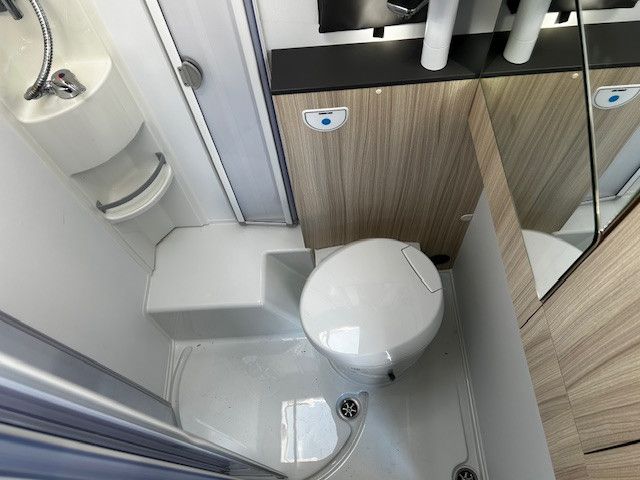 Sicherheits-Gasregler MonoControl CS (nicht bei V55SP/V60SPF/V65XL), Cassetten-Toilette mit elektrischer Spülung, Dachhaube 40x40cm in Wohn- und