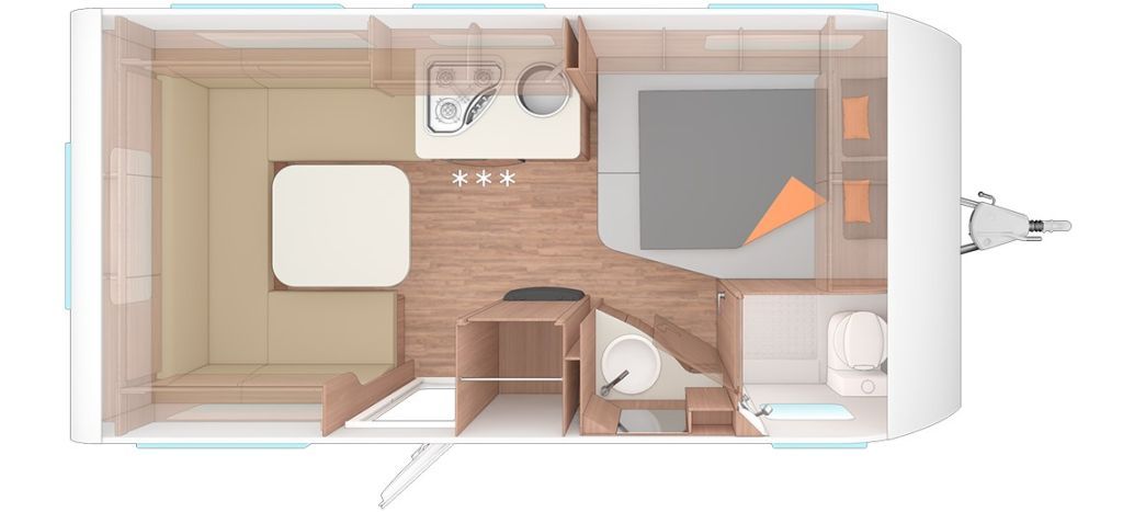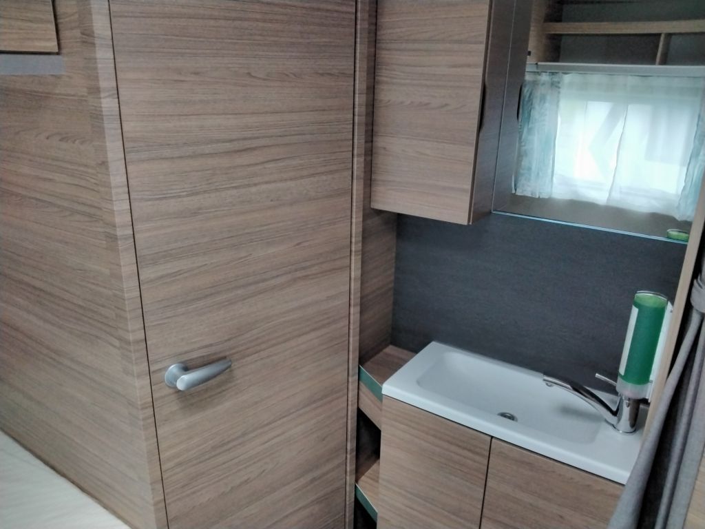 Smart-Paket (Seifen- und Spülmittelspender, Wasserfiltersystem "bluuwater", Frischwassertank 45 Liter Festeinbau, MediKit-Gutschein, Schwerlastkurbelstützen, Stabilisator-Sicherheitskupplung, Umluftanlage 12 V, Kombi-Rollos an den Fenstern inkl. Verdunklung und Insektenschutz)