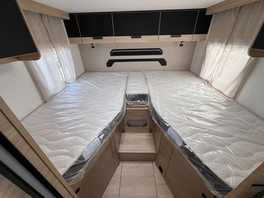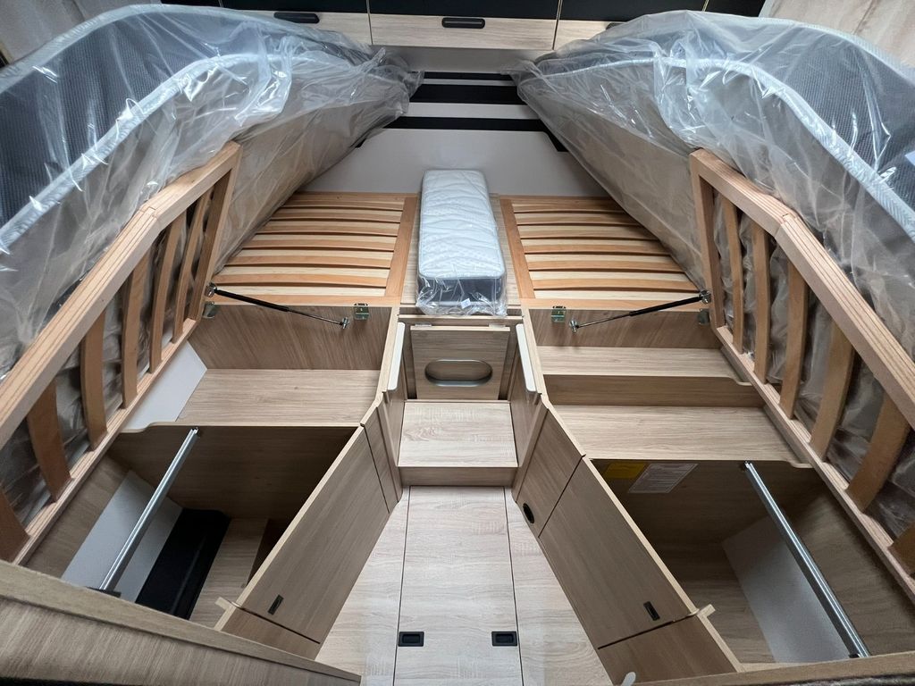 Dieses Modell bietet Platz für 4 Personen, hat zwei Einzelbetten, welche verbunden werden können und ein elektrisches Hubbett für 2 Personen.