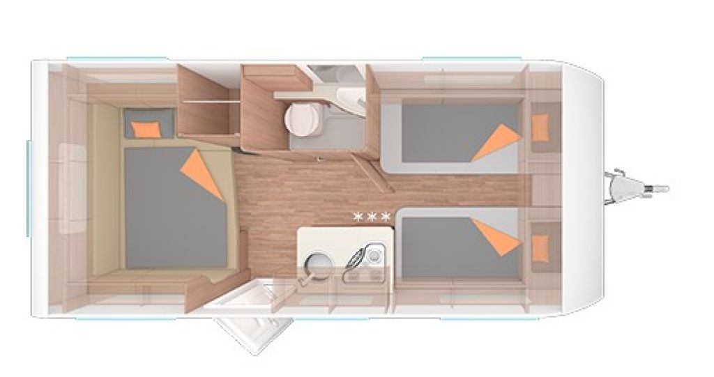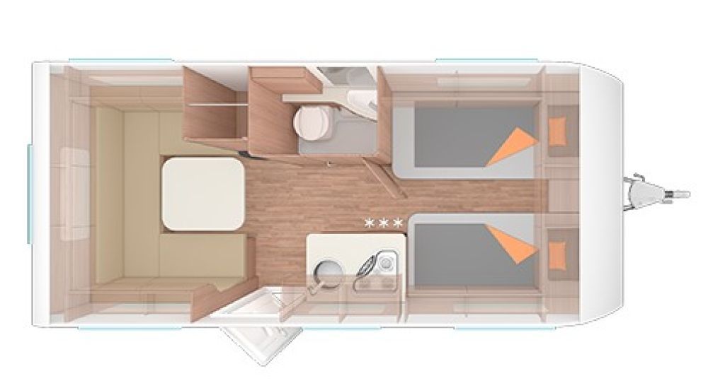 Smart-Paket (Frischwassertank 45 Liter Festeinbau, Schwerlastkurbelstützen, Stabilisator-Sicherheitskupplung, Umluftanlage 12 V, Kombi-Rollos an den Fenstern inkl. Verdunklung und Insektenschutz)