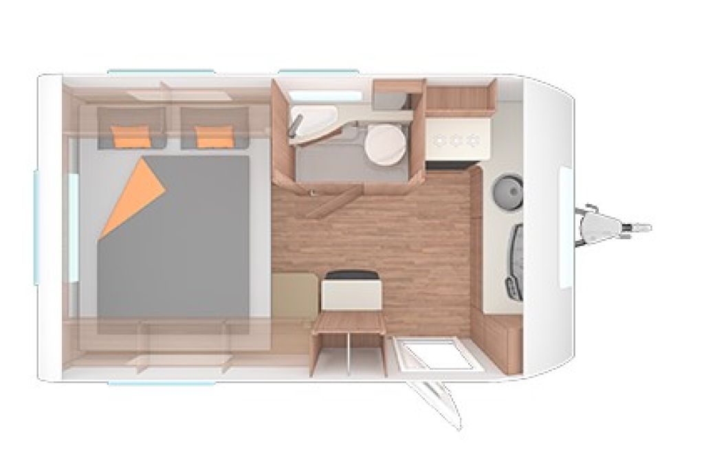 Smart-Paket(Frischwassertank 45 Liter Festeinbau, Schwerlastkurbelstützen, Stabilisator-Sicherheitskupplung, Umluftanlage 12 V, Kombi-Rollos an den Fenstern inkl. Verdunklung und Insektenschutz)