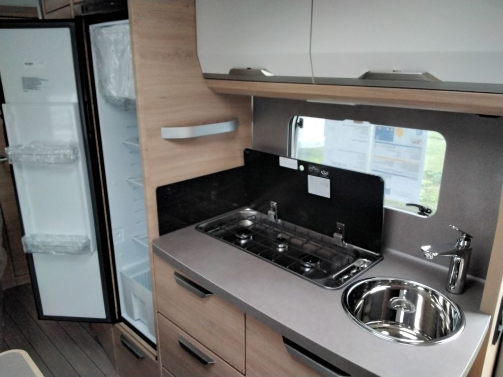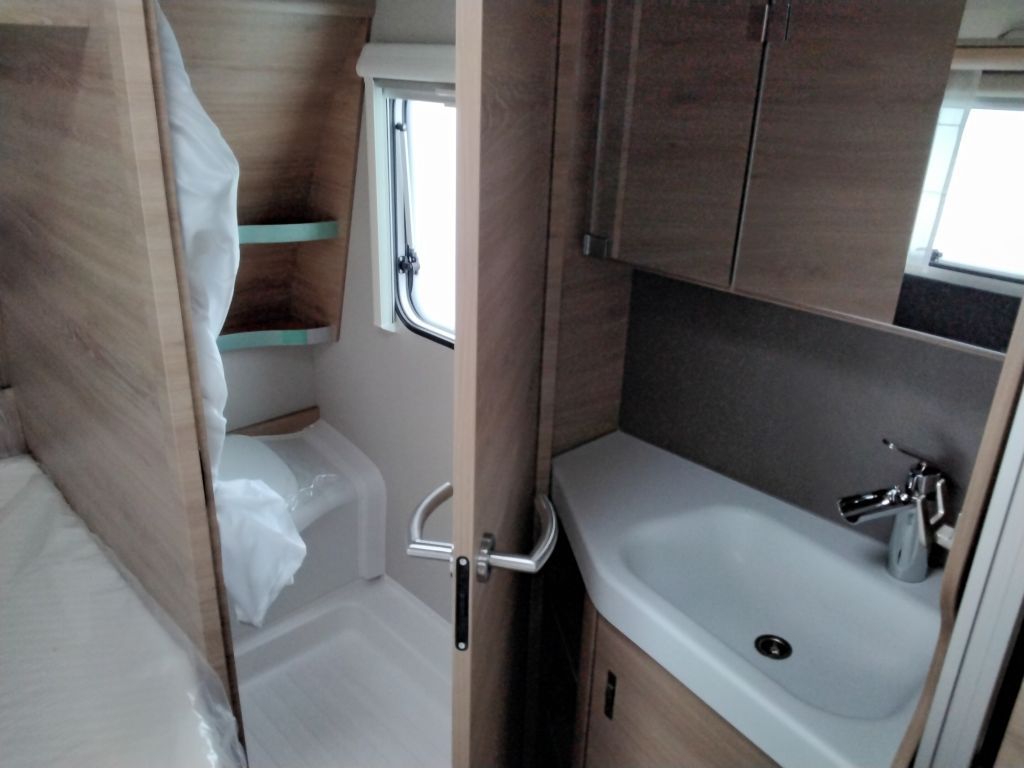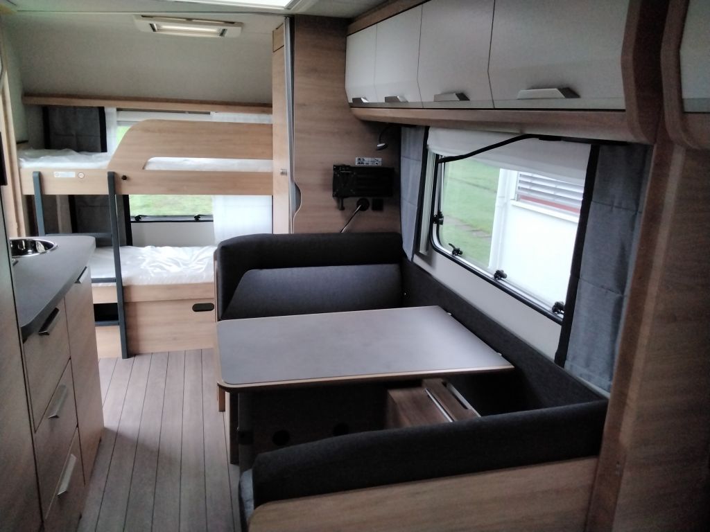 Aufbautüre KNAUS PREMIUM Mehrfach-Verriegelung, verdecktes Scharniersystem, inkl. Fenster mit Plisee-Verdunklung, integriertes Regenschirmfach, hochwertige Applikationen, multifunktionale Tasche im KNAUS Design