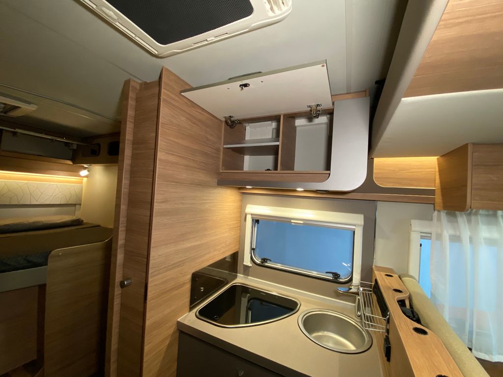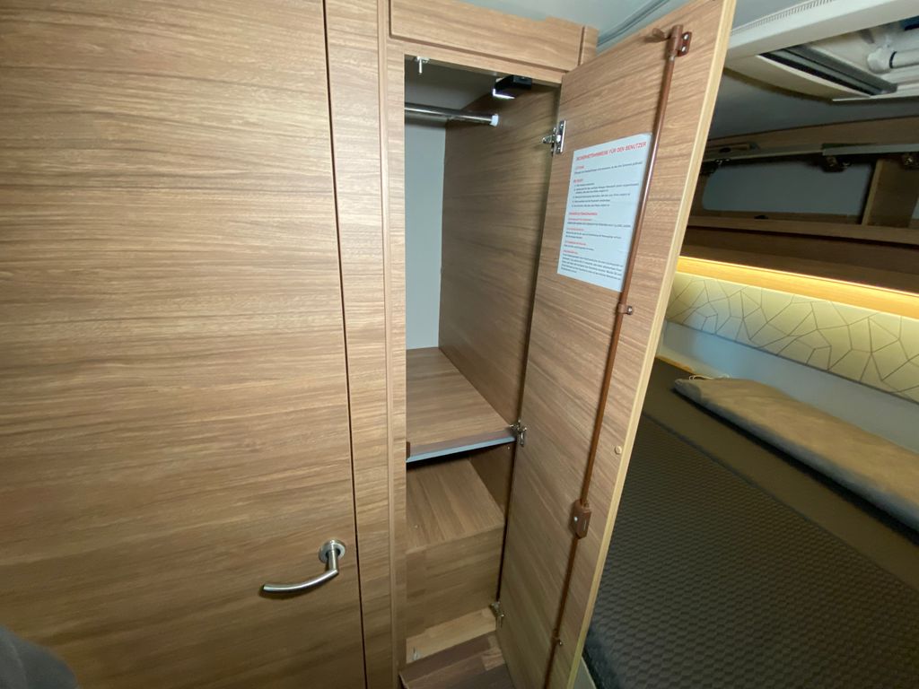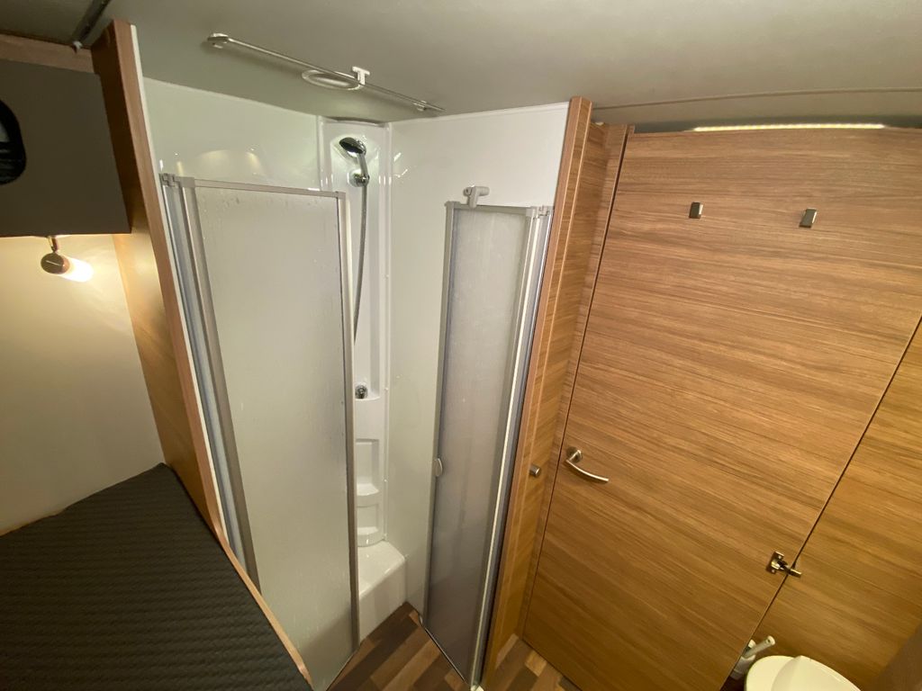 6-Gang-Schaltgetriebe, Breitspurfahrwerk, Scheibenbremsen, Gaskasten für max. 2x11 kg Gasflaschen, Fenster ausstellbar mit Insektenschutz und Verdunklung, GFK Dach, Vorzeltleuchte mit Bewegungsmelder, Hubbett im Frontbereich, Bettumbau Sitzgruppe, 3-Flammen-Gaskocher mit Glasabdeckung, Spülbecken aus Edelstahl, 133 Liter Kühlschrank, aufklappbare Arbeitsplattenverlängerung an der Küche, Duschraum deluxe mit Kunststoffverkleidung und Duschtür, Heizung Truma Combi 6, LED Beleuchtung im Wohnraum, Ladebooster für Aufbaubatterie