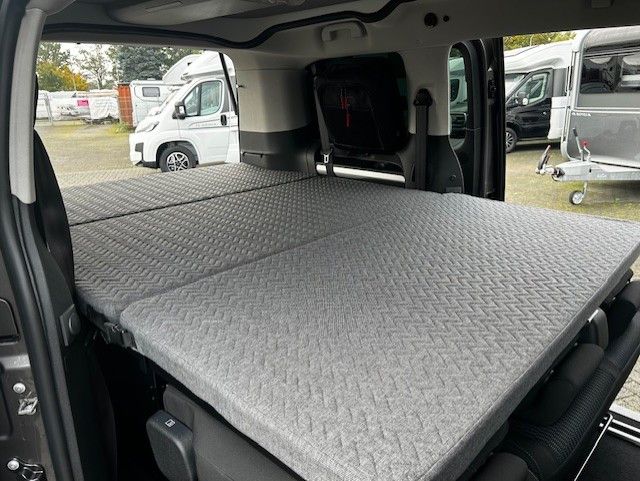 beheizbare Komfort-FH-Sitze, Lenkrad in Leder, Stopp-Start-Automatik, Getriebe manuell (6+R), 17"-Leichtmetall-Räder, Reifen- Reparatur-Set, Schiebetür links+rechts, Seitenscheiben hinten dunkel getönt, Heckfenster zum Öffnen, 2.Sitzreihe entnehmbar, AGM-Wohnraumbatterie 100Ah, Ladebooster.