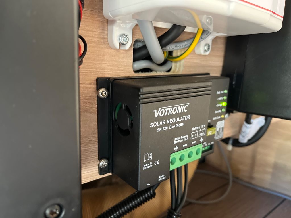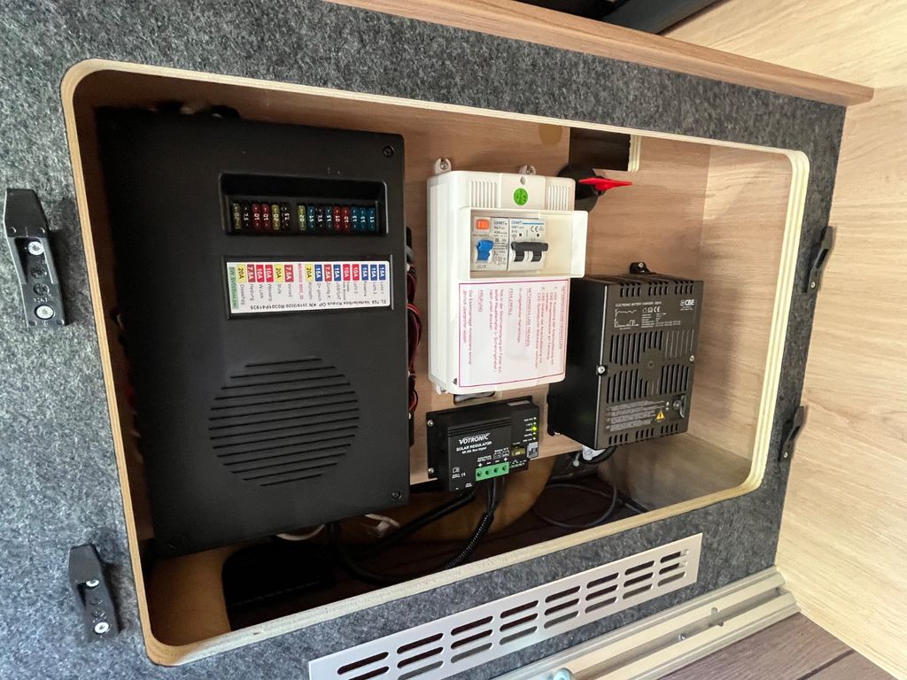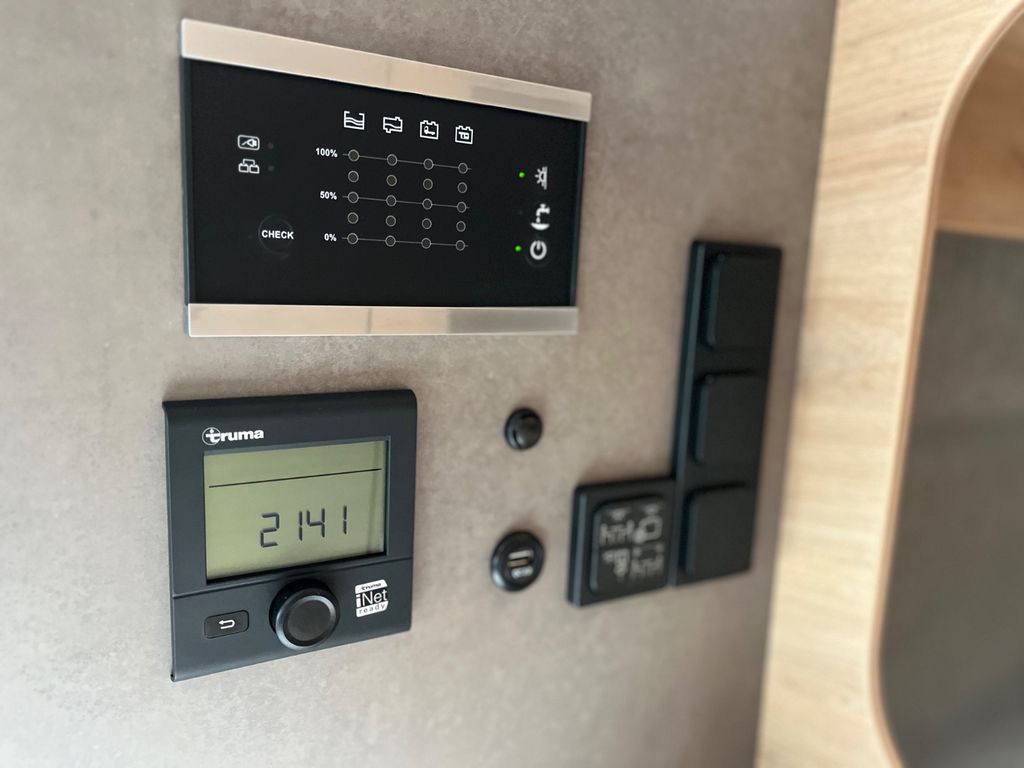 Energy Basic-Paket-Touch-Control-Panel mit intuitivem Bedienkonzept-12 V Powersteckdose zusätzlich, in der Garage (1 Stück)-12 V Powersteckdose zusätzlich, im Deckenschrank vorne (1 Stück)-230 V SCHUKO-Steckdose zusätzlich, in der Küche (1 Stück)-230 V SCHUKO-Steckdose zusätzlich (Garage)-Intelligentes Ladegerät mit 25 A Ladeleistung