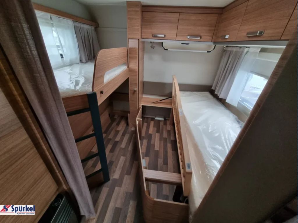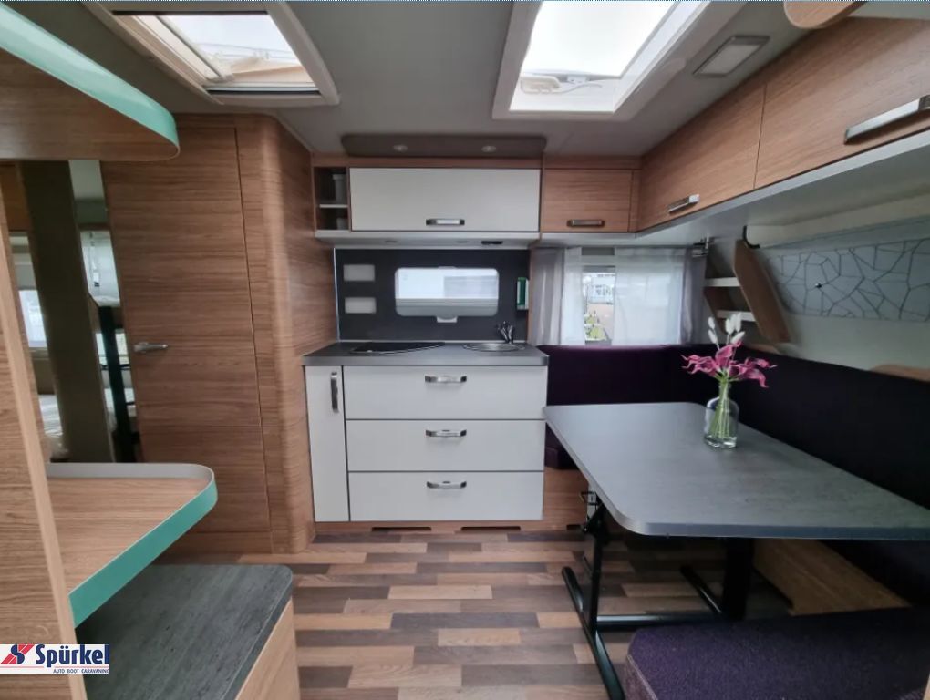 Smart-Paket (Kombi-Rollos an den Fenstern, inkl. Verdunklung und Insektenschutz, Schwerlastkurbelstützen, Stabilisator-Sicherheits-Kupplung, F rischwassertank 45 Liter, Festeinbau, Wasserfiltersystem „bluuwater“, Umluftanlage 12 V, MediKit Gutschein, Seifen- und Spülmittelspender)