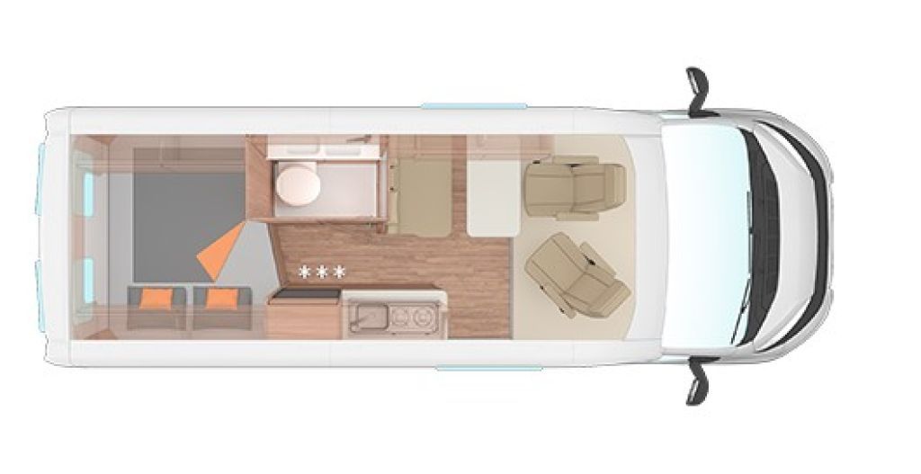 Voltage-PaketAmbientebeleuchtung im Wohnraum/Nasszelle, Regenrinne über der Schiebetür mit LED (dimmbar), Leseleuchten im Fahrerhaus, USB-Steckdose im Küchenbereich, 230V SCHUKO-Steckdose zusätzlich im Heck, USB-Steckdose im Heck, 230V SCHUKO-Steckdose zusätzlich in der Sitzgruppe