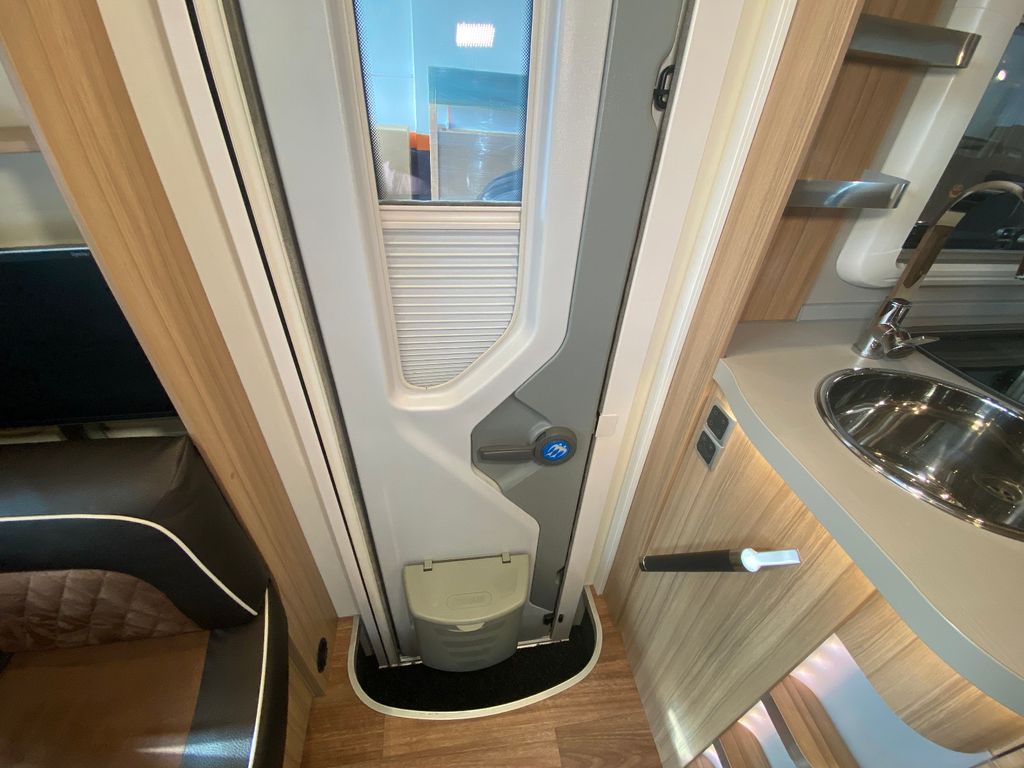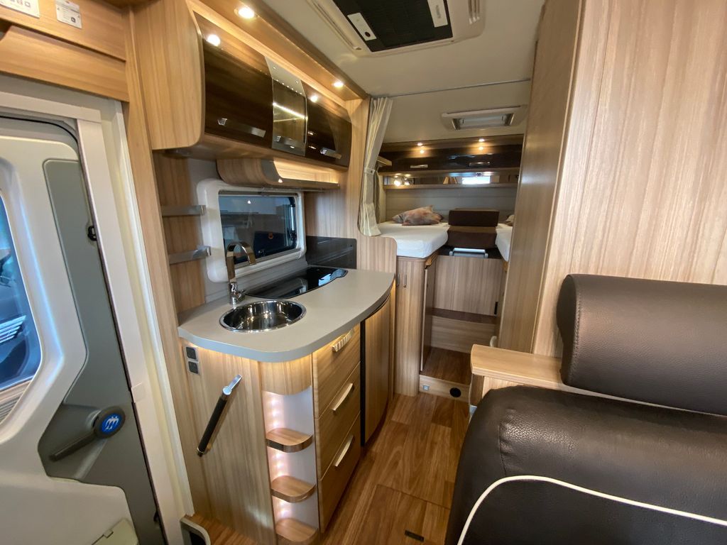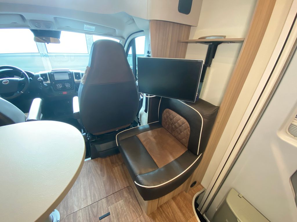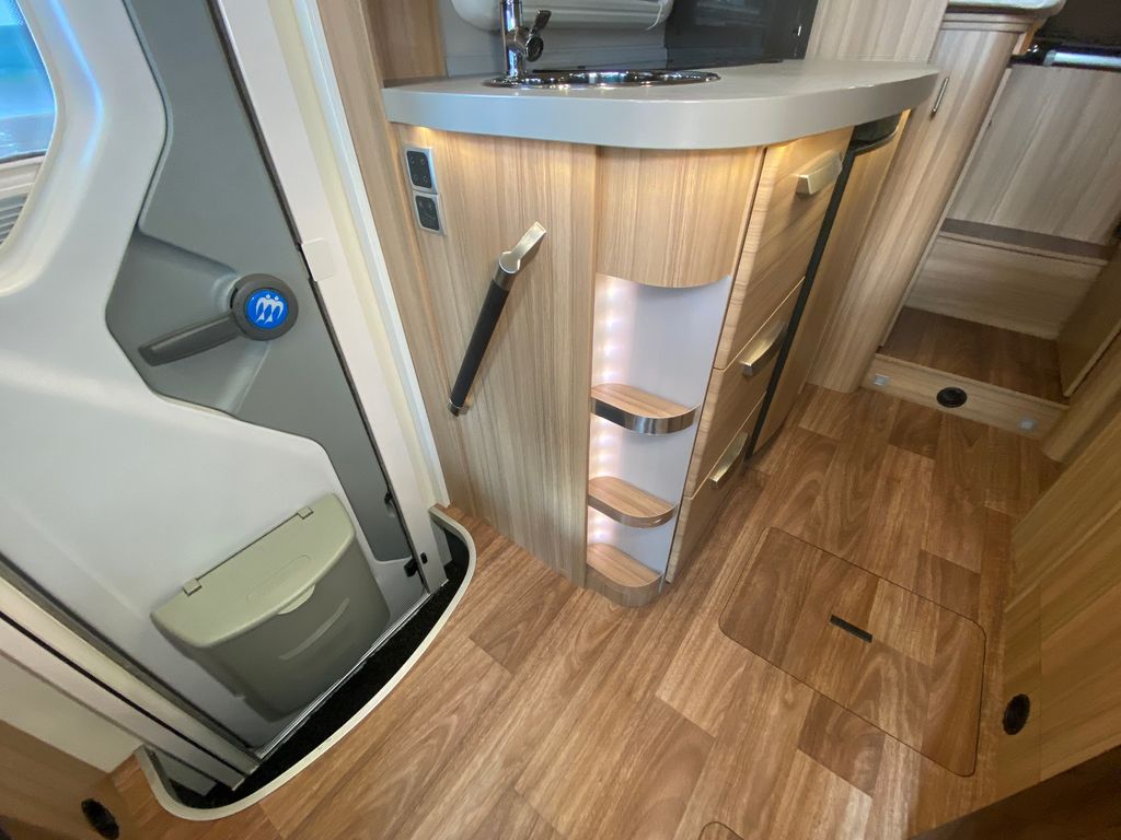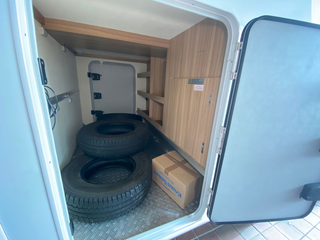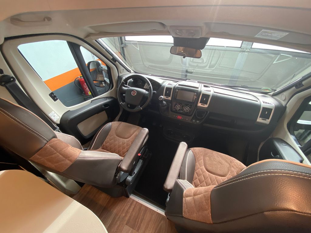 Breitspurfahrwerk Fiat Ducato, 130 PS, Hill Holder, GFK-Dach, Gaskasten für 2 x 11 kg Gasflaschen, Mehrzweck-Doppelboden, Vorzeltleuchte mit Bewegungsmelder, PVC-Bodenbelag, Bettumbau Monositzgruppe, Umluftanlage, Drei-Flamm-Gaskocher mit Glasabdeckung, Edelstahlspülbecken, Servicebox von außen zugänglich (inkl. Frisch-/Abwasserhahn, 230V Euro-Anschluss), Einstiegstufe beleuchtet, Einstiegsgriff beleuchtet