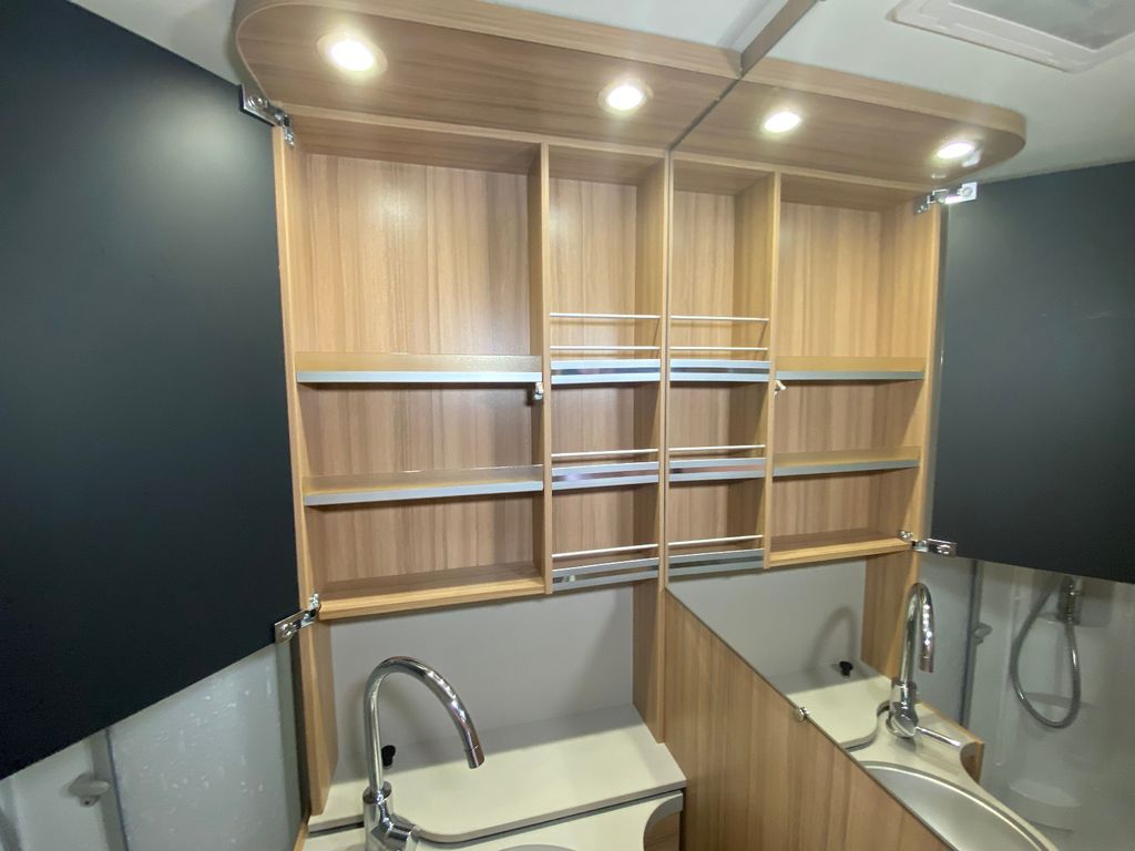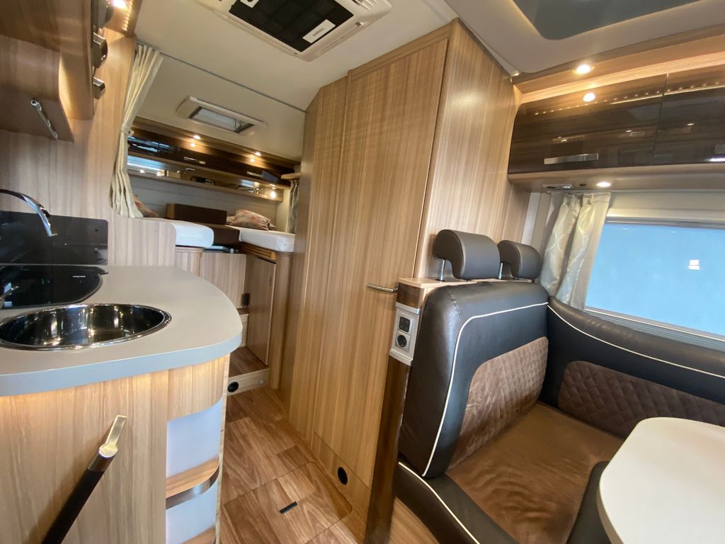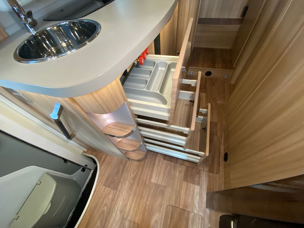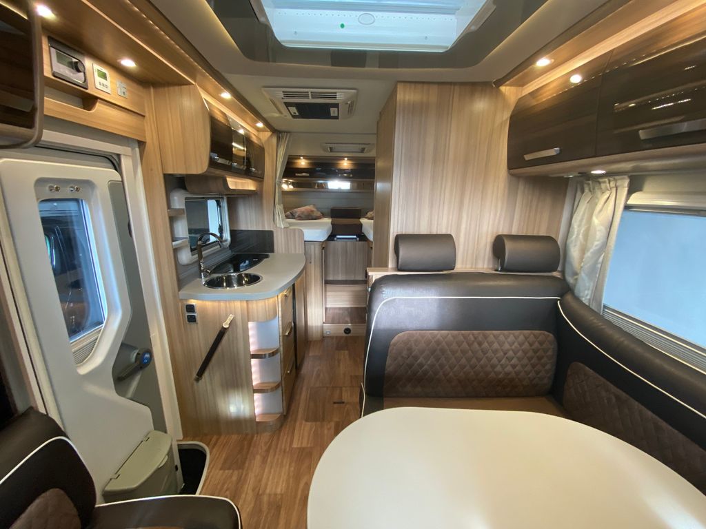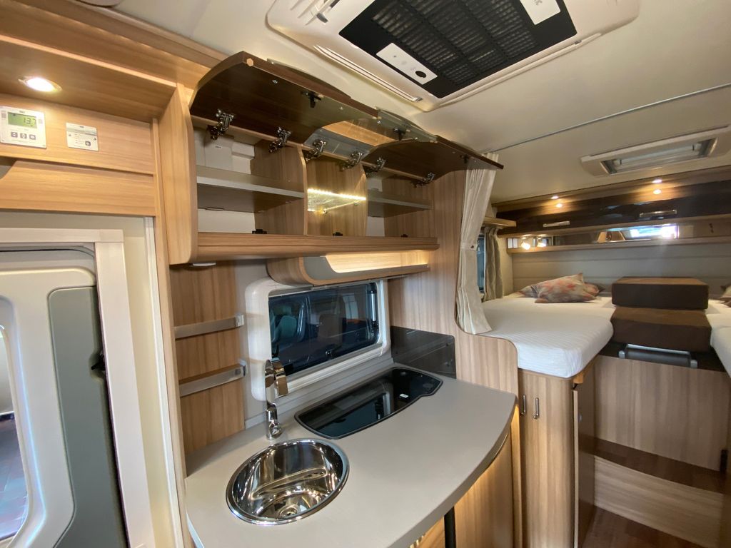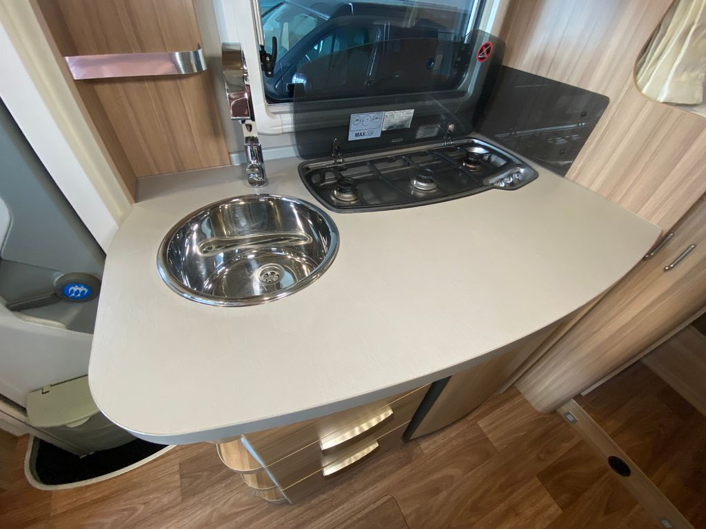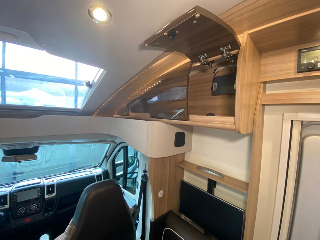 Breitspurfahrwerk Fiat Ducato, 130 PS, Hill Holder, GFK-Dach, Gaskasten für 2 x 11 kg Gasflaschen, Mehrzweck-Doppelboden, Vorzeltleuchte mit Bewegungsmelder, PVC-Bodenbelag, Bettumbau Monositzgruppe, Umluftanlage, Drei-Flamm-Gaskocher mit Glasabdeckung, Edelstahlspülbecken, Servicebox von außen zugänglich (inkl. Frisch-/Abwasserhahn, 230V Euro-Anschluss), Einstiegstufe beleuchtet, Einstiegsgriff beleuchtet