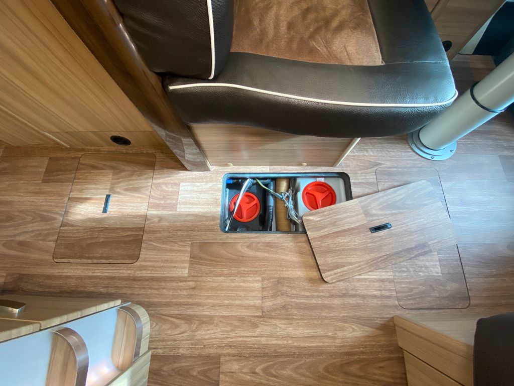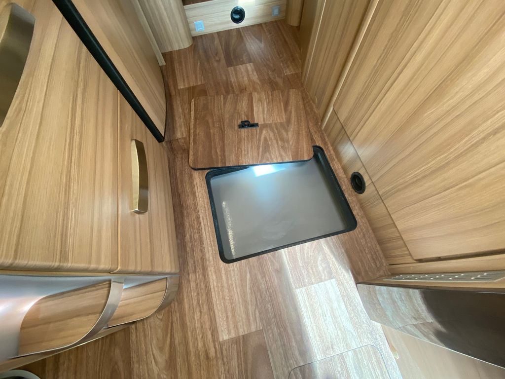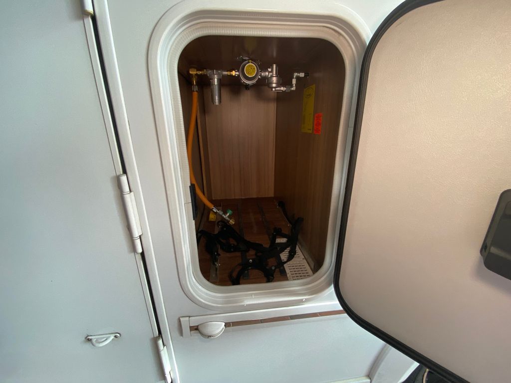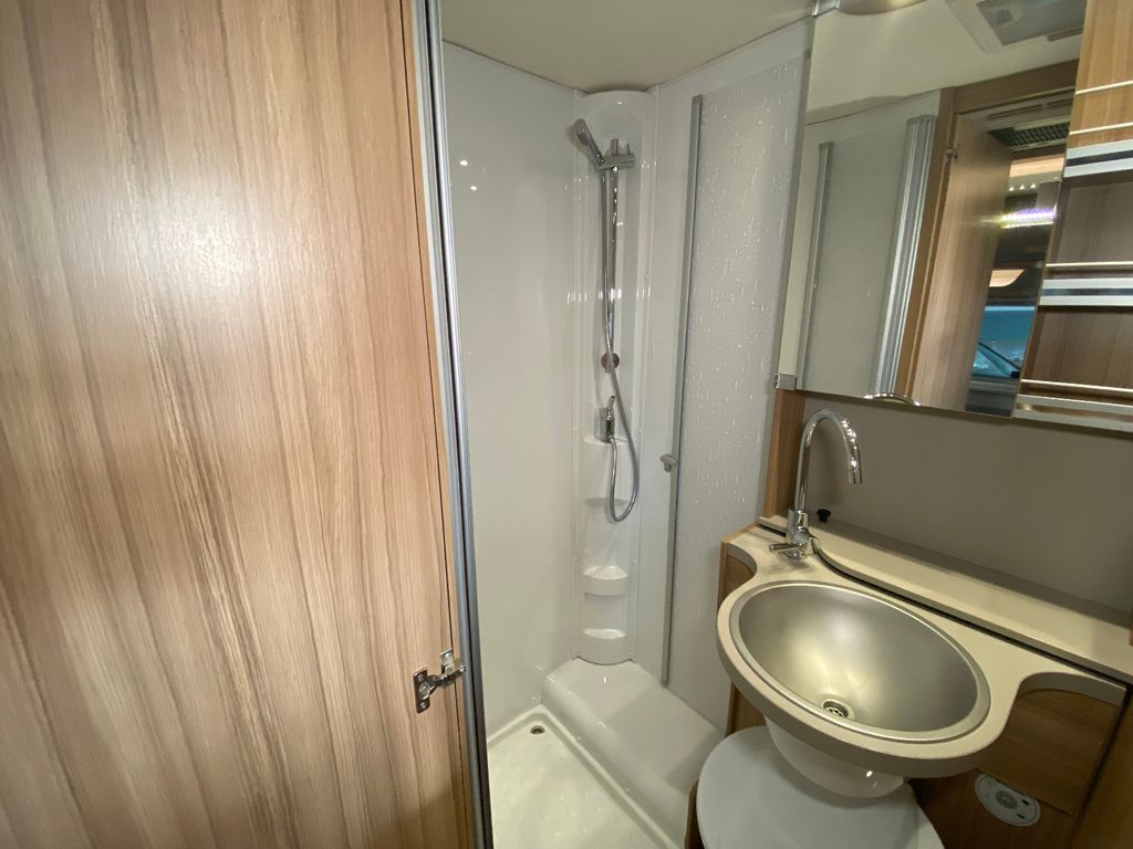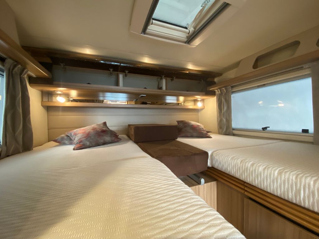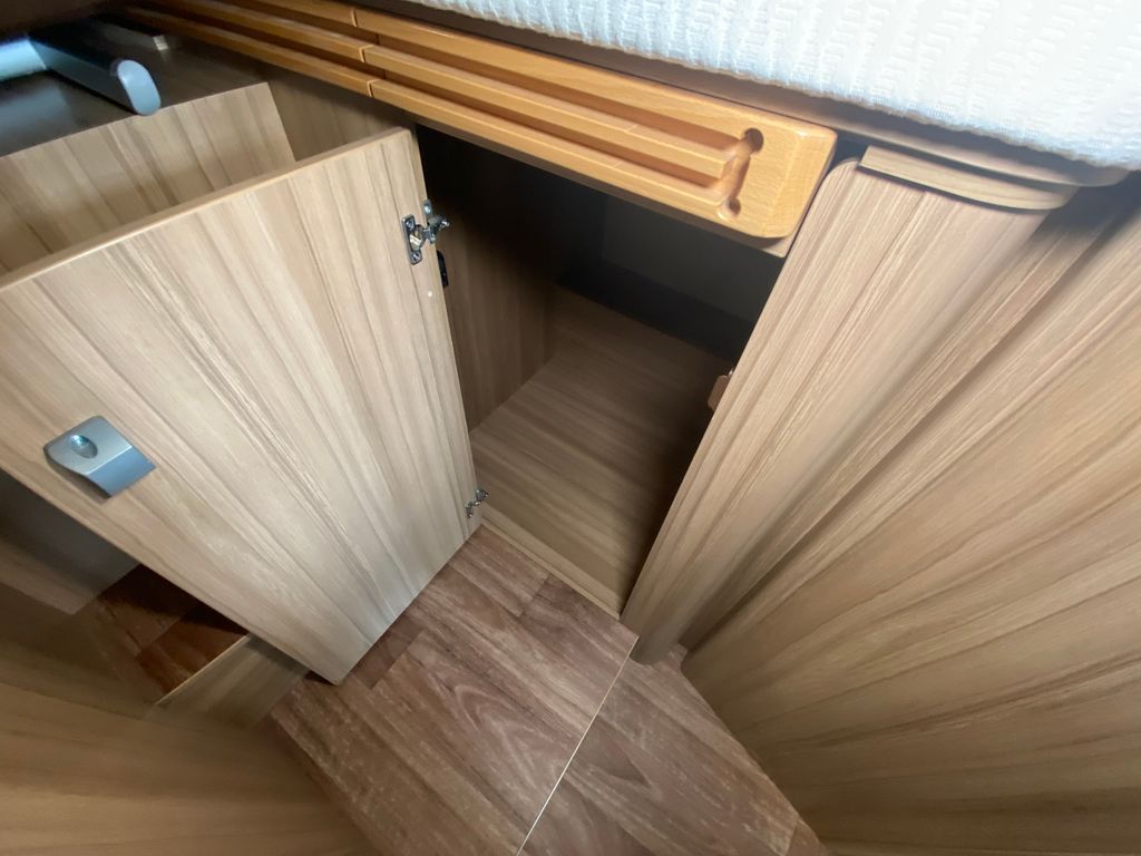 Breitspurfahrwerk Fiat Ducato, 130 PS, Hill Holder, GFK-Dach, Gaskasten für 2 x 11 kg Gasflaschen, Mehrzweck-Doppelboden, Vorzeltleuchte mit Bewegungsmelder, PVC-Bodenbelag, Bettumbau Monositzgruppe, Umluftanlage, Drei-Flamm-Gaskocher mit Glasabdeckung, Edelstahlspülbecken, Servicebox von außen zugänglich (inkl. Frisch-/Abwasserhahn, 230V Euro-Anschluss), Einstiegstufe beleuchtet, Einstiegsgriff beleuchtet