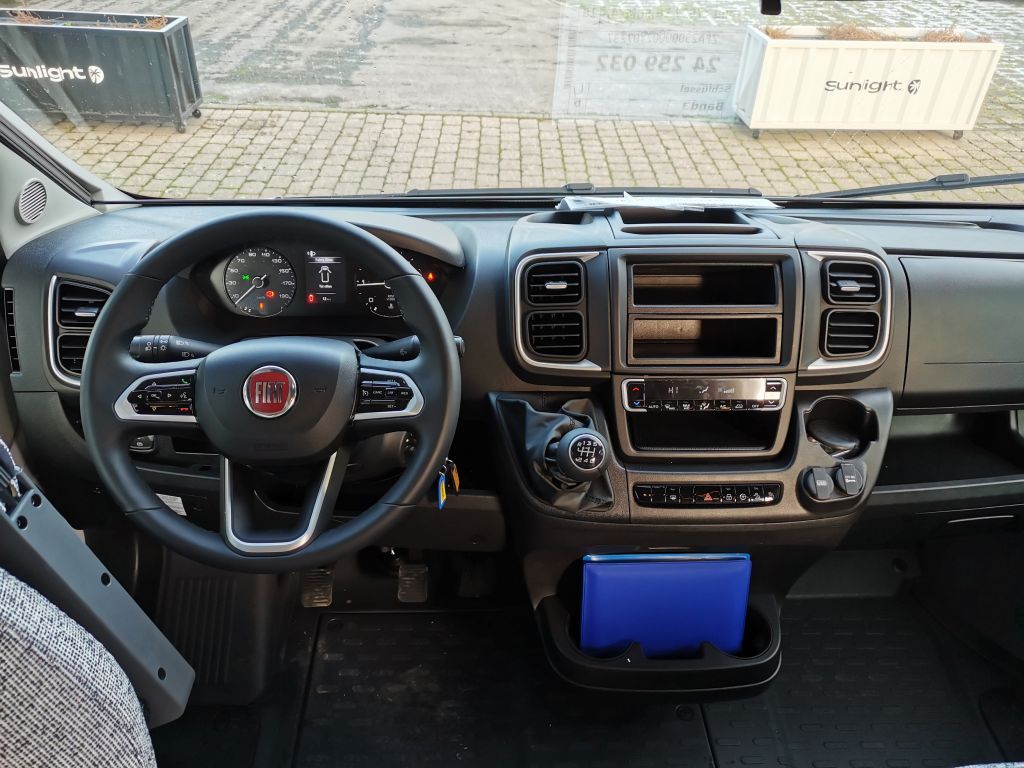 GT Paket (Elektrische Feststellbremse, Armaturenbrett mit Aluminium Applikation, Fahrerhaus Klimaanlage automatisch, LED Tagfahrlicht, Lenkrad mit Bedienelementen, Dieseltank 90 Liter inkl. 19L AdBlue Tank, Scheinwerfer mit schwarzem Rahmen, Frontgrill schwarz glänzend mit Chromzierleisten, Skidplate schwarz glänzend, Alufelge Fiat 16 Zoll, Doppelverglaste Rahmenfenster mit Verdunklung & Mückenschutz, Außendesign GT (Heckleuchtenträger mit schwarzem Diffusor, erweiterte Beklebung, Skidplate "rot"))
