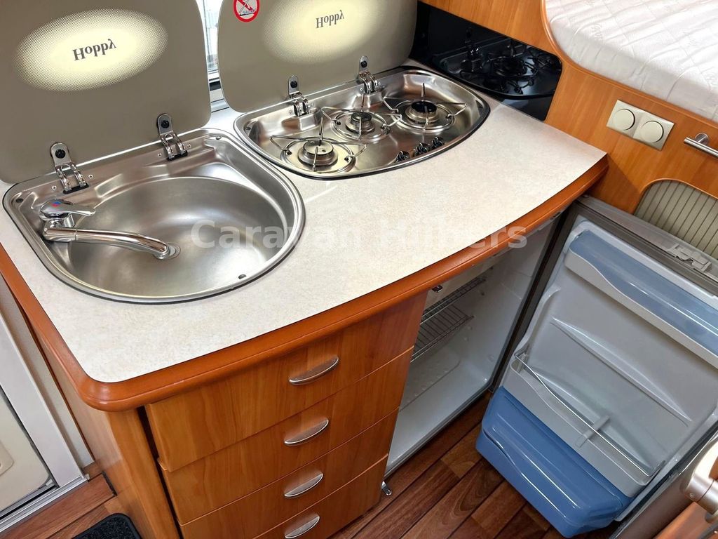 Küche mit Spüle ,Herd und Kühlschrank